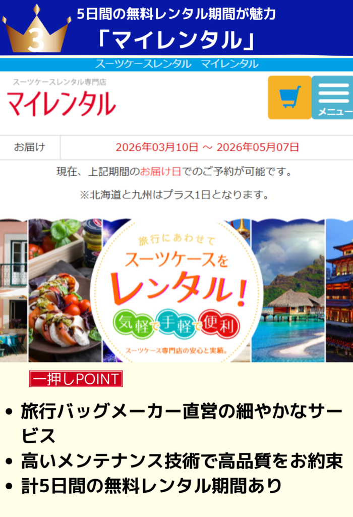 「スーツケースレンタルランキング」ご参考になりましたでしょうか?